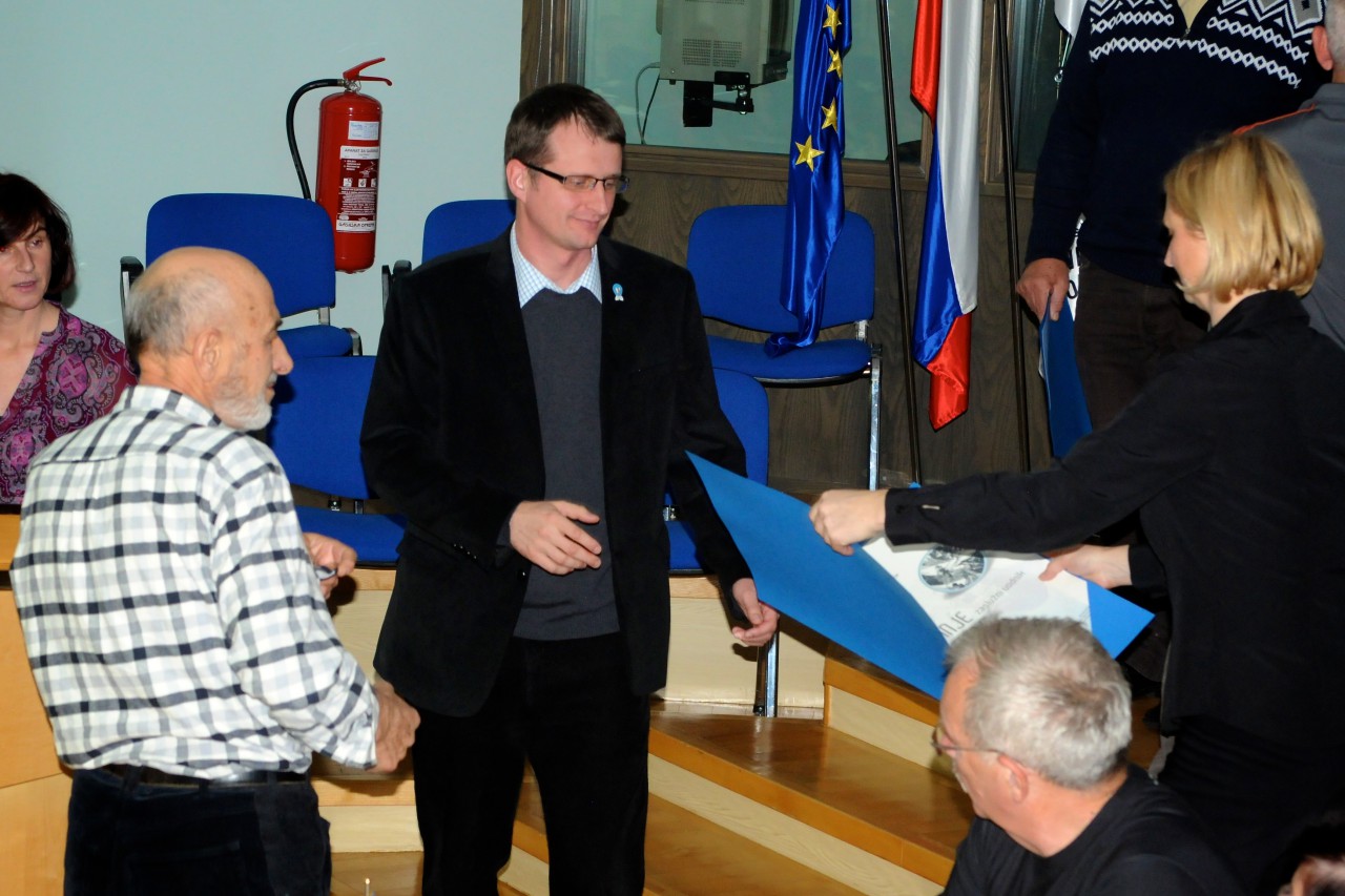 Predsednik Planinske zveze Slovenije Bojan Rotovnik in načelnik VK PZS Franc Gričar, sta podelila najvišja priznanja vodnikom PZS. Naziv zaslužni vodnik PZS je prejelo kar sedem naših vodnikov.
