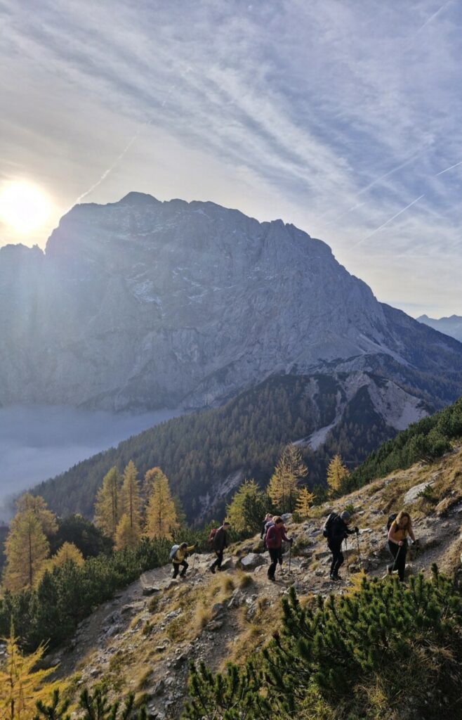 Vzpon do Vratc je potekal v prijetnem vzdušju ter občudovanju okoliških gora. V nadaljevanju poti smo na eni strani lahko opazovali mogočne stene Mojstrovk, na drugi pa megleno morje, zato nam je pot prehitro minila.