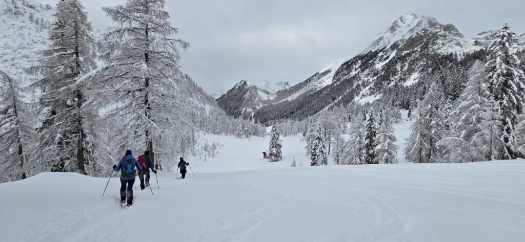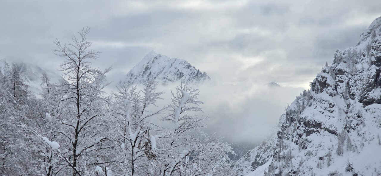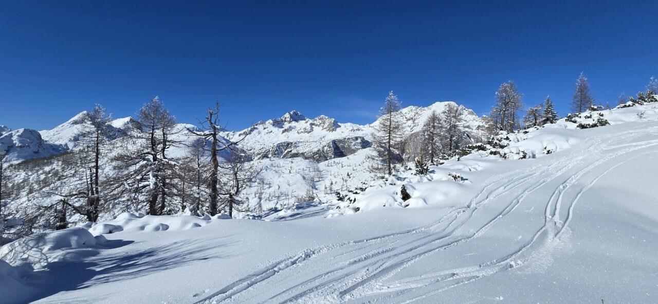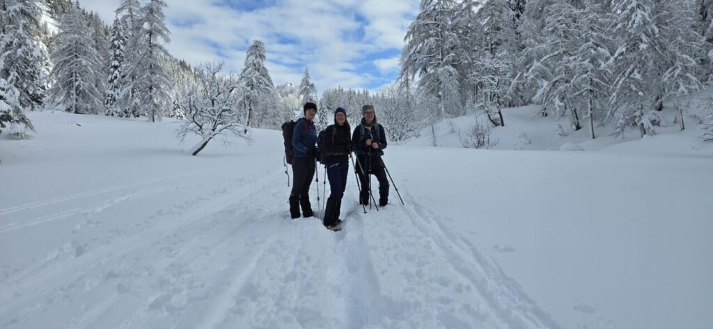 postanek. Ves čas smo občudovali zasneženo pokrajino ter okoliške gore, kljub slabši napovedi pa nas